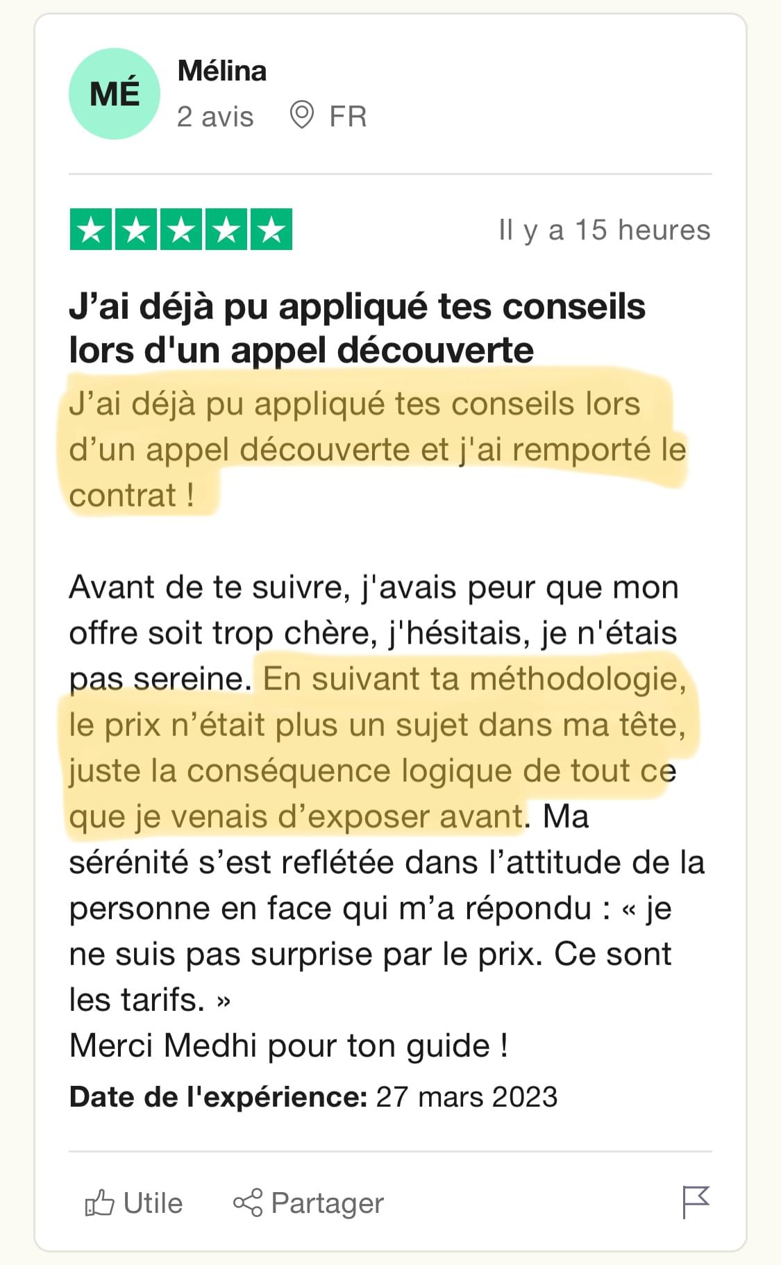 Oui, je suis d'accord, c'est une ligne fine, mais je préfère vous dire ça et vous faire gagner du temps et vous éviter de vivre encore et encore des déceptions que de vous vendre une méthode magique qui vous promet de vivre de votre activité sans jamais vendre...